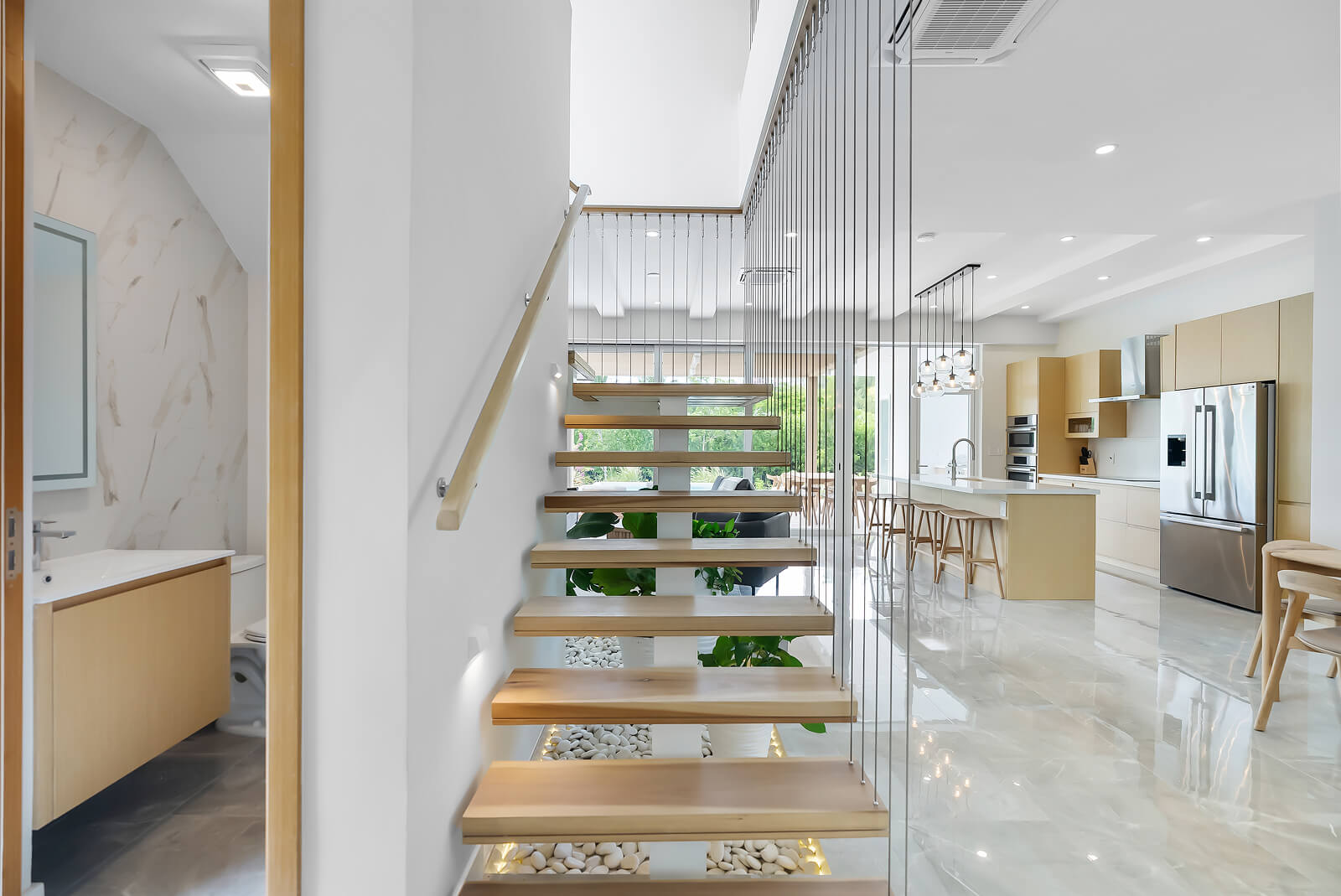 Villa #5 is designed around open-concept living and effortless indoor–outdoor flow. The kitchen, dining, and living areas connect seamlessly, enhanced by a dedicated TV room, wet bar, and powder room for entertaining ease.